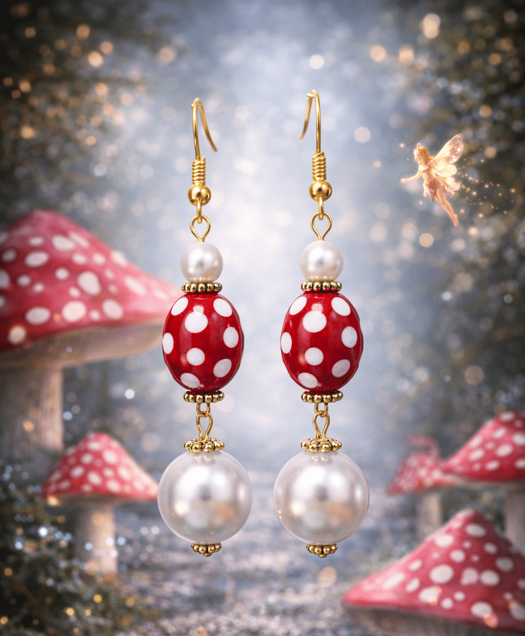 Discover a touch of woodland enchantment with the Pixie Berry Artisan Earrings. This playful pair feels like a sweet discovery from a sun-drenched fairytale forest, blending a cheerful retro pattern with the timeless elegance of soft white pearls.