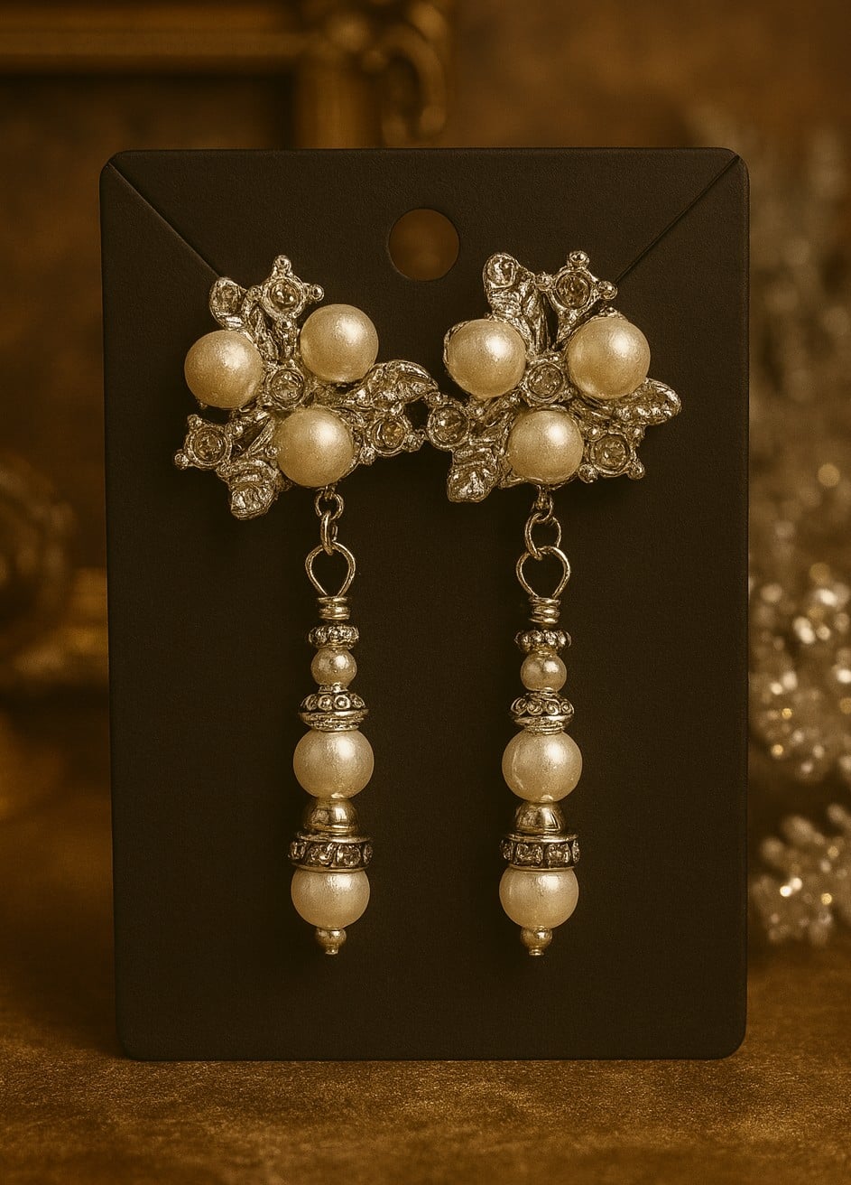 Be the first to review “💍 “Timeless Elegance” – Vintage-Inspired Silver & Pearl Statement Dangle Earrings”