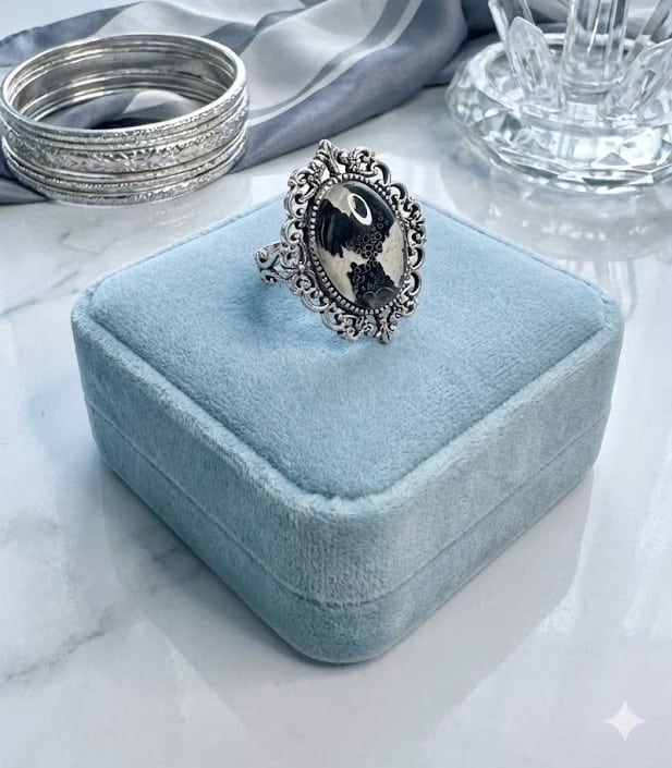 Designed for both style and convenience, the ring features a comfortable adjustable band, making it easy to wear on any finger or give as a thoughtful gift without worrying about sizing. It’s the perfect “everyday” accessory to spice up a casual outfit or add a finishing touch to a black-tie look.