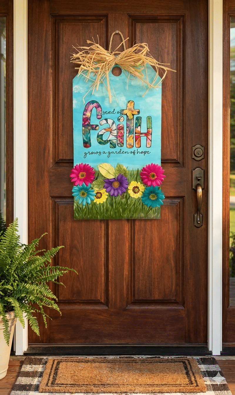 Plant a seed of joy on your front door! 🌼 A vibrant, floral faith hanger that welcomes every guest with hope and color.